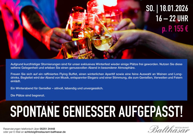 Das Restaurant Balthasar ist für viele Anlässe die perfekte Location. Lassen Sie Ihre Hochzeit, Ihren Geburtstag, Ihr Jubiläum oder Ihre Firmenfeier zu einem unvergesslichen Tag werden.